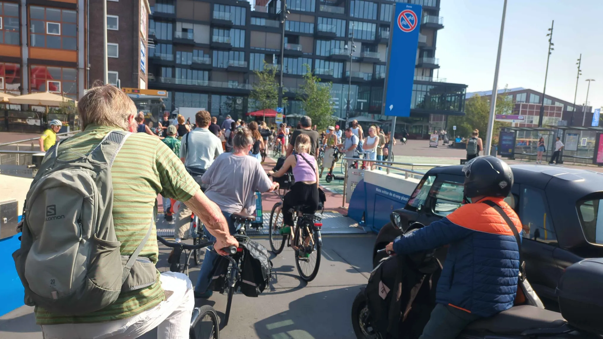 NYC has a pretty neat ferry system. The main station has 5 docking points and the boats themselves quickly come, unload, load and go. One ferry rider brought her nice road bike to use Manhattan's dedicated bikeways.